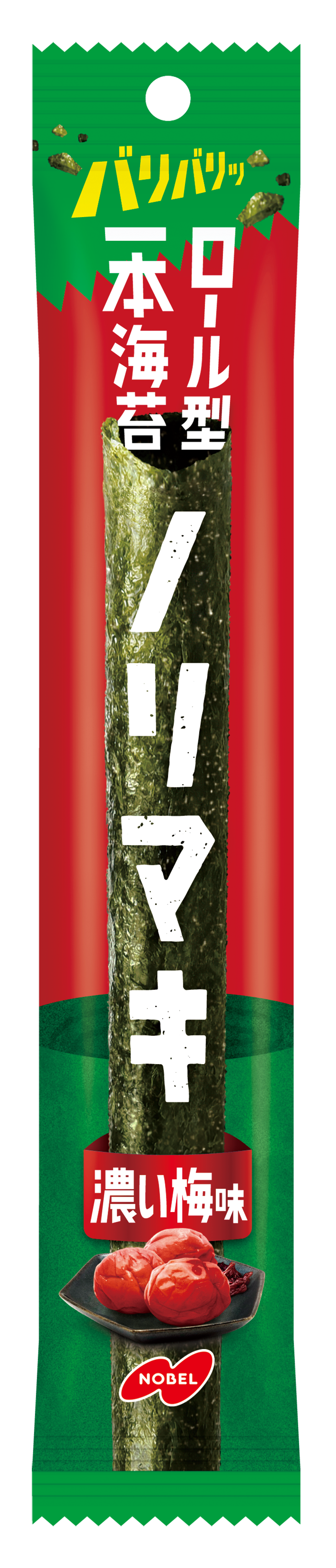 “ロール形状の海苔”という新提案!海苔本来のうま味がひと口で広がる!「ノリマキうま塩味/濃い梅味」