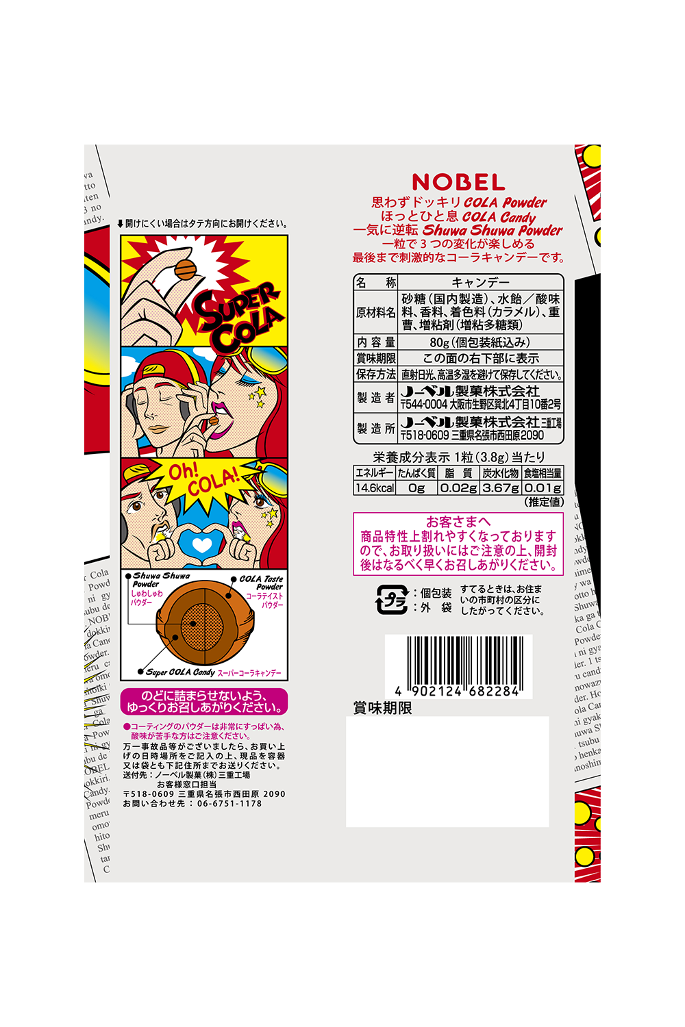 - 人気の「スーパーレモン」シリーズにコーラ味が登場!しゅわしゅわパウダーが入ったキャンデーに、酸味が効いたパウダーをコーティング!3つの味の変化を楽しめるキャンデーです。