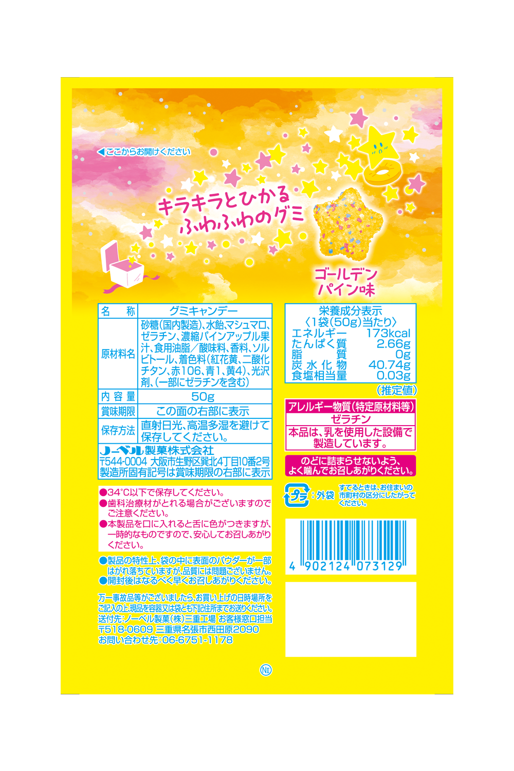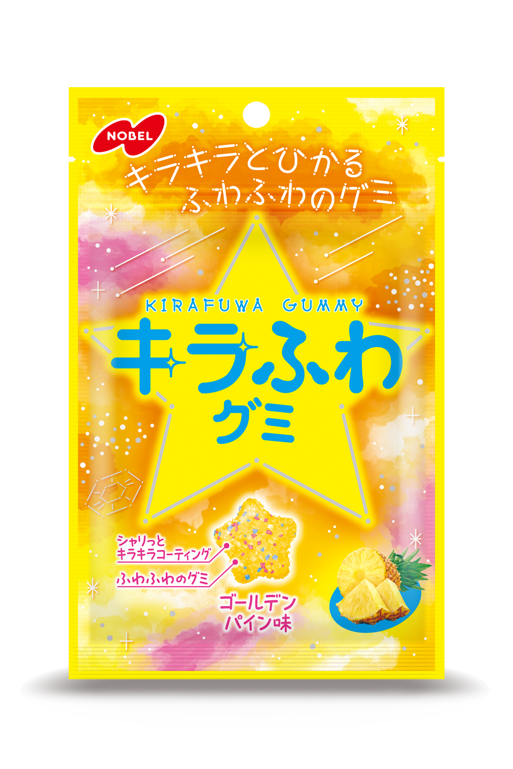 “ふわシャリ食感” を楽しめる、お星さまのようなかわいいゴールデンパイン味グミ。