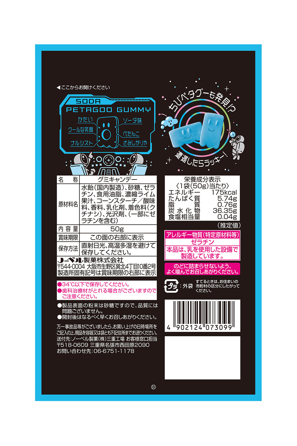 - ペタグーの世界観を楽しめる宇宙感のあるデザインと、噛むほど濃厚な味わいのグミ。遭遇したらラッキーなちびペタグーも新登場!薄くてかたい〝前人未踏食感″がクセになる!噛むほどに濃厚な味が広がる、ぺたんこハードグミ「ペタグー」です。
